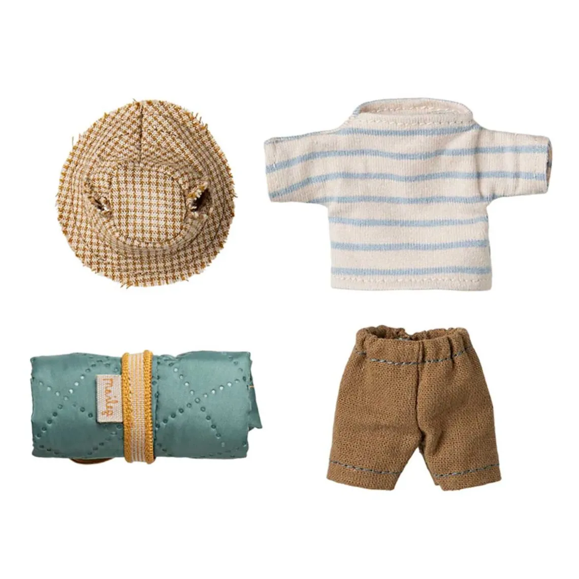 Denne eventyrlystne mus er klar til vandretur i den vilde natur. Hun er udstyret til flere dages vandring og har sin sovepose med til nætter under stjernerne. Med magneter i hænderne kan hun holde fast i tilbehør – og du kan udvide legen med flere dele fra vandremus-kollektionen.