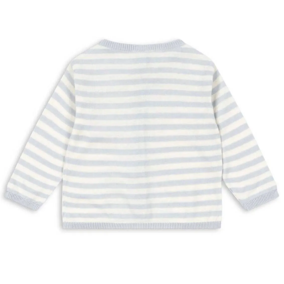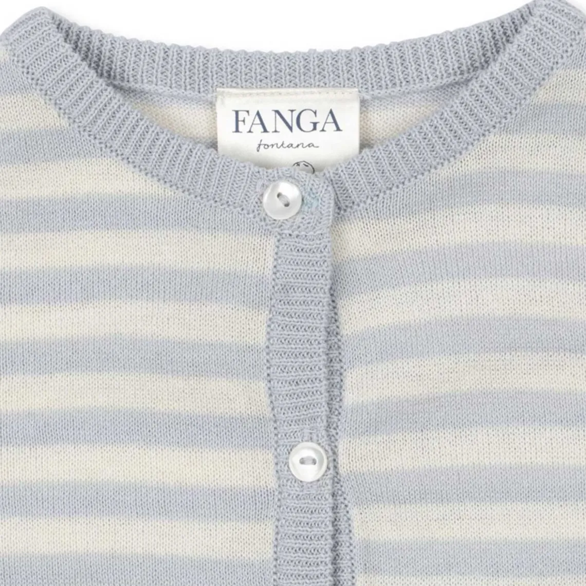 Med dekorative muslingekanter og perlemorsknapper foran er den både praktisk og elegant – perfekt til enhver lille garderobe.