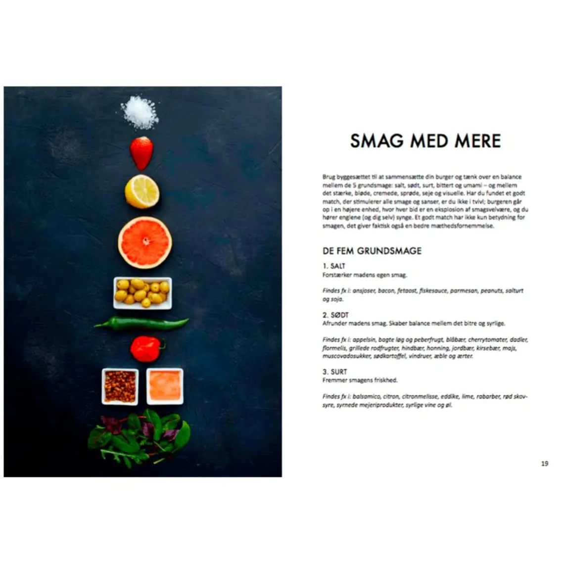 Inspirationen til denne bog er hentet fra mange steder i verden, og som den vil vise, behøver en burger ikke altid at være med kød. Faktisk er der stor vægt på grønne burgere, som nok kan overraske de fleste. Der gives forslag til både vegetar-, insekt-, fiske-, skaldyr- og kødburgere – alle krydret med fantasifuldt og spændende fyld og tilbehør, som er lige til at gå til og let at lave.